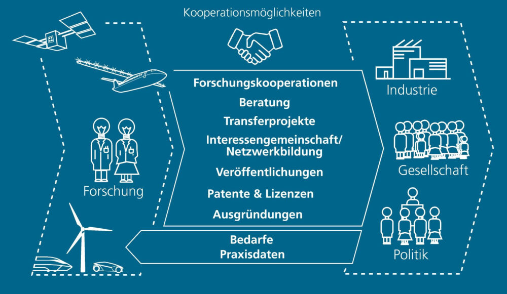 Sponsorships have also proven to be a very effective method of transfer. This model has been implemented in the past with Airbus as well as with companies from the energy and transport sectors. The close interlocking through the sponsor is a very good start for the transfer and at the same time helpful for joint research projects.