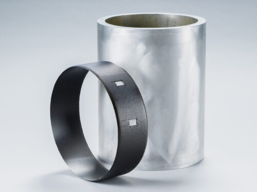 Um den Ursachen solcher Gradienten auf den Grund zu gehen, wurde ein einfaches, aber effektives Probendesign entwickelt: zylindrische Rohrproben, abgelegt auf hohlen Metallwerkzeugen, wie in der nächsten Abbildung zu sehen. Hierzu wurde duromeres Prepreg – also mit Harz vorimprägnierte Carbonfasern – unter unterschiedlichen Bedingungen in Umfangsrichtung auf das Werkzeug gewickelt. Variiert wurden das Prepreg-Material (Hexcel 6376 und Teijin Q183), das Werkzeugmaterial (Aluminium vs. Stahl), der Autoklavzyklus und die Vorspannung beim Ablegen. Bei der Materialauswahl wurden bewusst zwei unterschiedliche Materialtypen gewählt. Hexcel 6376 ist ein konventionelles Harzsystem ohne Zähmodifikatoren, während Q183 ein schnellaushärtendes und zähmodifiziertes System ist.
