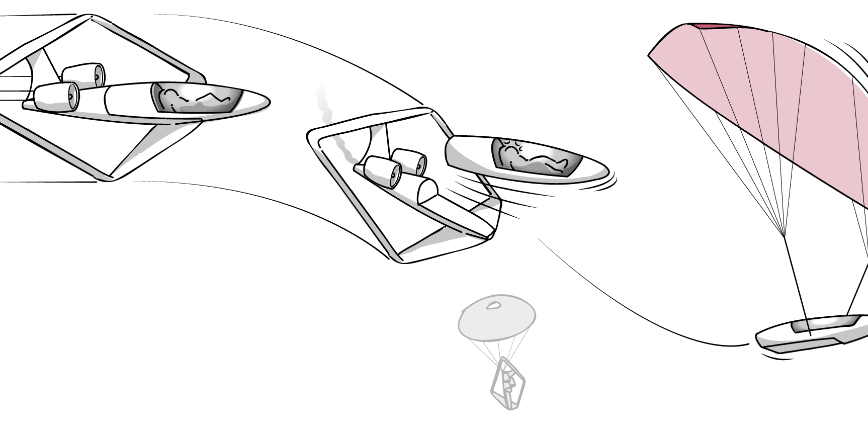 Die Mobilität am Himmel soll zukünftig durch autonom fliegende Verkehrsflugzeuge geprägt sein. Um das Vertrauen der Passagiere für eine Steuerung ohne Pilot zu gewinnen, können integrierte, autonome Rettungssysteme einen Beitrag liefern. Aufbauend auf dem Lufttaxi-Entwicklungsprojekt Silent Air Taxi der RWTH Aachen wurde das Flugzeug-Strukturkonzept vom Sicherheitssystem ausgehend neu entworfen. Beim Silent Air Taxi wird nun im Notfall die Kabine gleichzeitig als Rettungseinheit genutzt und vom Rumpf getrennt. Im Notfall gelangen dann die Passagiere sicher zur Erde zurück. Die Vielfalt der Faserverbunde stellt hierfür zahlreiche Möglichkeiten und Lösungen für einen innovativen Hochleistungsleichtbau bereit.