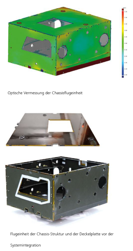 Die Deckelplatte des Rovers ist besonders beansprucht und muss über einen extremen Temperaturbereich von -145 bis +75 °C formstabil bleiben. Dabei auftretende Eigenspannungen können zu Mikro-Rissen im Material oder Verklemmungen führen. Der Vorteil von CFK: Die Wärmedehnung ist extrem gering. Verbindungen zu Aluminiumteilen mit 10-fach höherer Wärmedehnung erfordern besondere Lösungen, wie besonders elastische Klebstoffe und darauf zugeschnittene Fügestellen. Für Kabelhalterungen lassen sich zum Beispiel besonders gut isolierende und sehr dehnbare Aramid- und Glasfasern einsetzen. Alle Einzelteile der Deckelplatte müssen mit Ausnahme der hochisolierenden obersten Schicht elektrisch miteinander verbunden sein. Zum Rest des Chassis ist eine nahezu vollständige elektrische Isolierung erforderlich. Die Deckelplatte mit den Solargeneratoren und ihrer Elektronik muss rund 16 % der Rover-Gesamtmasse tragen. Der Masseanteil der Deckelplatte (324 g) am voll ausgerüsteten Rover (23,12 kg) beträgt nur 1,5 % und zeigt den enormen Leichtbaucharakter dieser Teilstruktur.