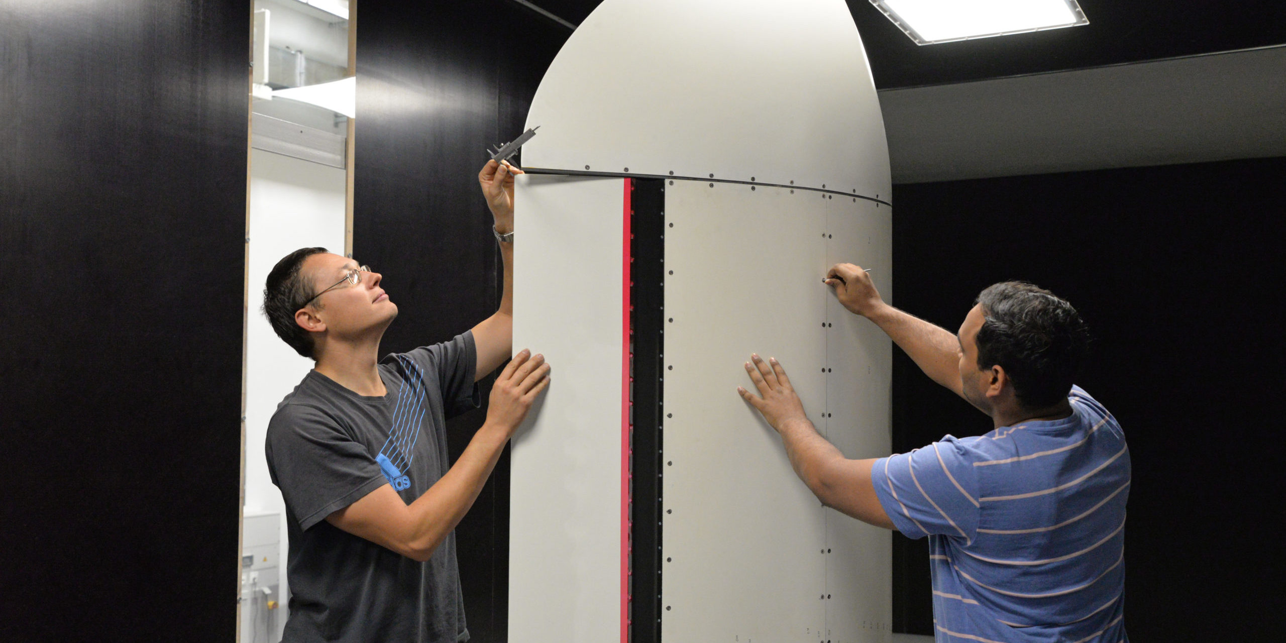 Zur experimentellen Untersuchung der Strömungsbeeinflussung fand Ende 2019 ein Windkanalversuch im Windkanal der Universität Oldenburg statt. Dabei wurde der Profilauftrieb für sieben Ausschlagwinkel der Hinterkante bei Strömungsgeschwindigkeiten zwischen 10 m/s bis 30 m/s ermittelt. Die erwartete Änderung des Profilauftriebes infolge des Ausschlags der Hinterkante konnte dabei bestätigt werden. Die Resultate decken sich mit den Ergebnissen, die vom Projektpartner ENERCON in Simulationen erzielt wurden.
