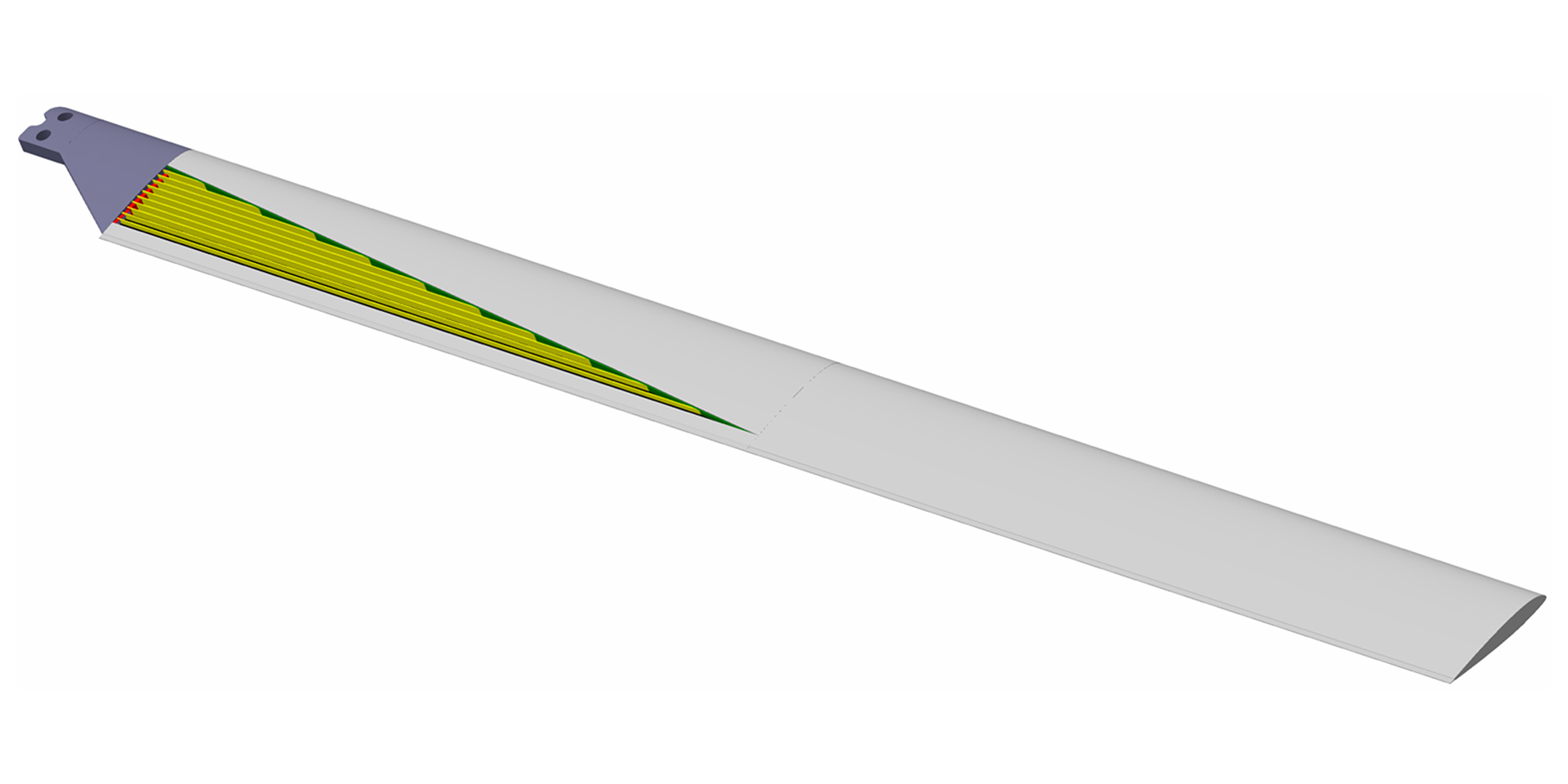Aus Berechnungen der Rotordynamik ist bekannt, dass eine Vergrößerung der Profilsehnenlänge im Wurzelbereich der Rotorblätter die Leistung im Schwebeflug erhöht, während eine kleine Profilsehnenlänge für einen schnellen Vorwärtsflug vorteilhaft ist. Auf dieser Grundlage wurde ein Strukturkonzept für eine Verlängerung der Profilsehne im Rotorblattwurzelbereich erarbeitet, das die Grundlage für eine Leistungsberechnung bildet.