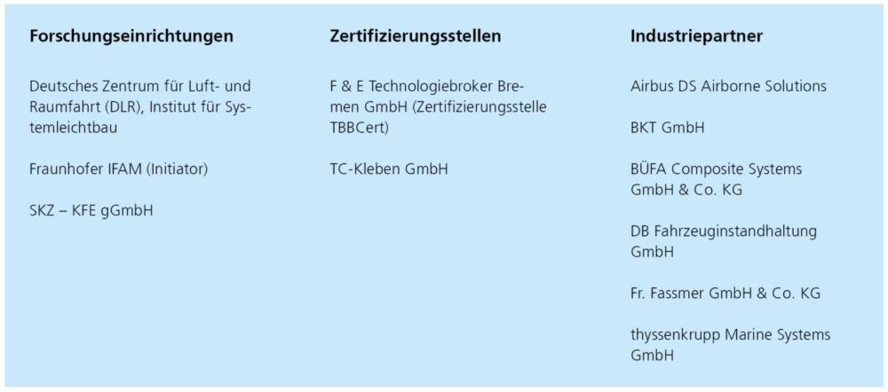 Um dem ambitionierten und umfangreichen Anwendungsbereich der DIN SPEC 35255 gerecht zu werden, hat das Fraunhofer IFAM in Bremen ein Konsortium aus Vertretern der verschiedensten Branchen und entlang der gesamten Composite-Prozesskette gebildet. Das DLR Institut für Systemleichtbau arbeitet maßgeblich mit und treibt den Technologietransfer voran.
